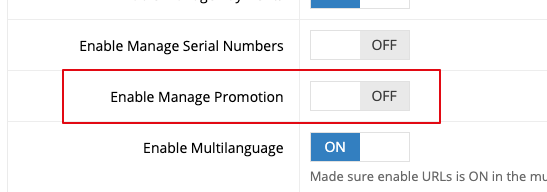 The first step to using promotions is to go System > Features and activate “Enable Manage Promotion”.