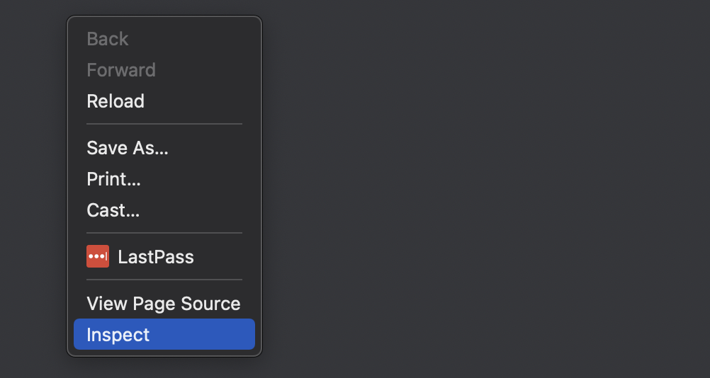 - Select “Inspect” from the list of options provided