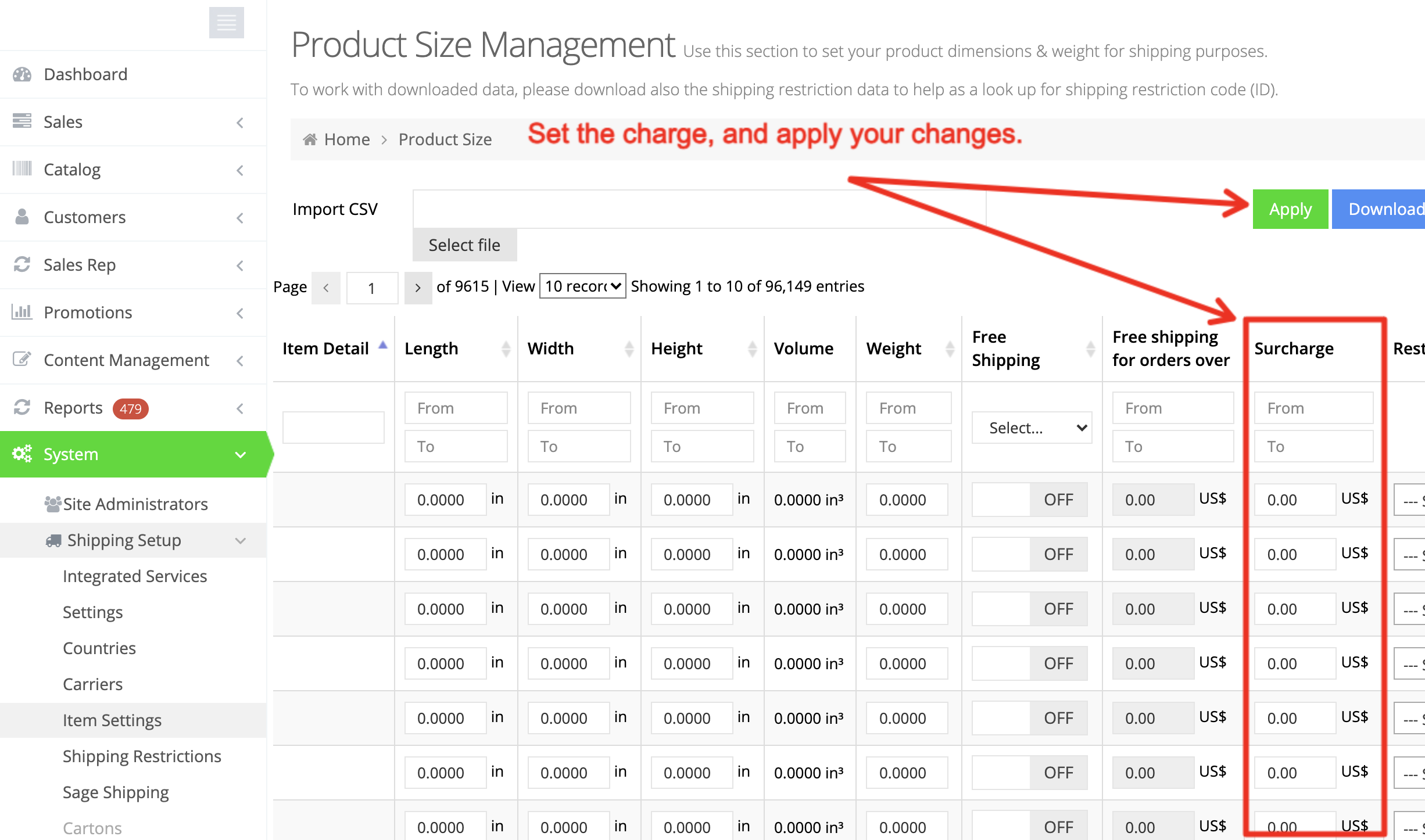 It is possible to add an item surcharge in the web store. In order to add item surcharges, navigate to System > Shipping Setup > Item Settings.