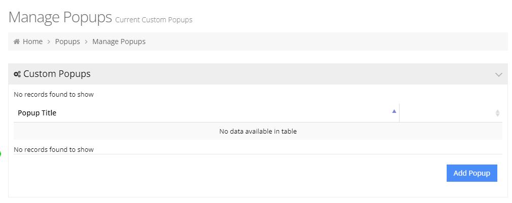 Once you know your message and where it’s going to live, via your web store Dashboard you can navigate to System > Modules > Popups. Click on the Add Popup button.