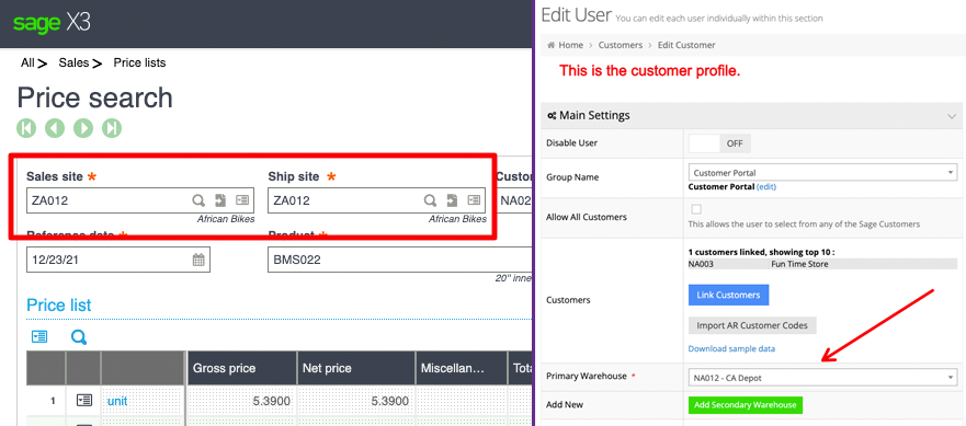 Note that if your customer is a B2C user, then the warehouses under the Pricing & Stock Settings in System > Features > B2C (Public) [dropdown menu] prevail.