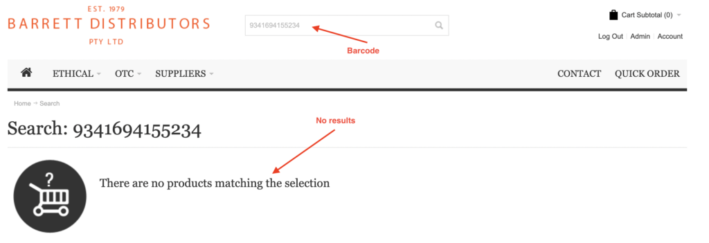Once the site is reindexed, a search using barcodes will return a successful result.