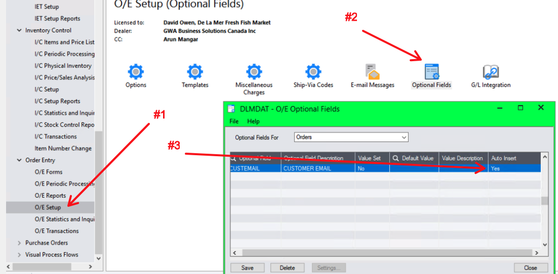 The next step is to go to System > Order Settings and locate the Optional Field Settings. Once there, choose your optional field and the Order Email option.
