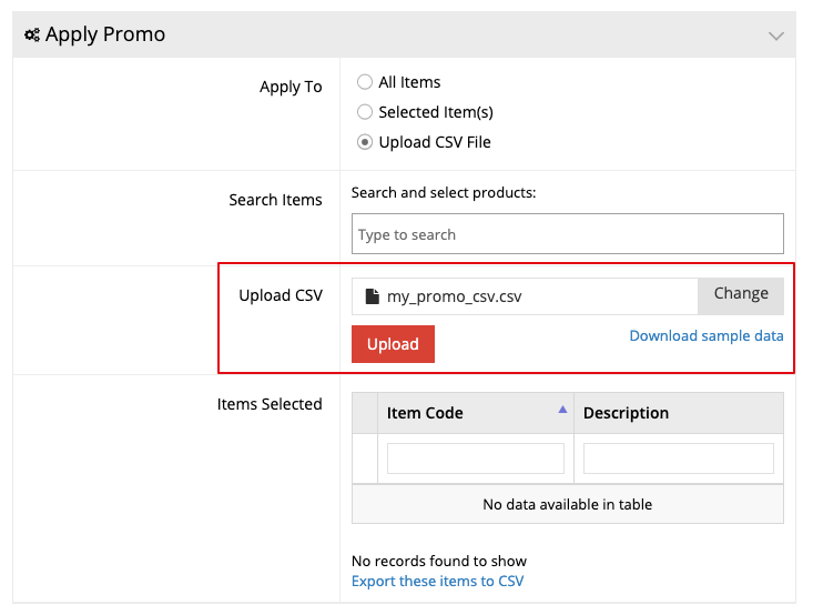 Once your CSV is ready, the next step is to upload it to your promotion code.
