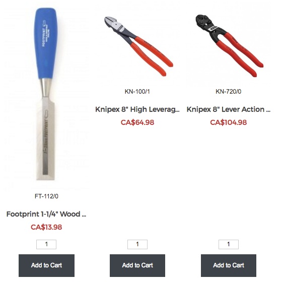 We decided to give the chisel’s image a ratio of 1:1. Now as you can see, all of the products line up nicely on the page appearing consistent and professional.