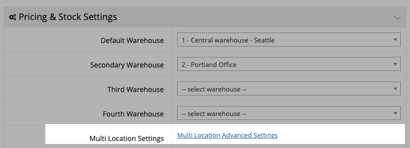 In Admin → System → Features → B2C (Public), under Pricing & Stock Settings, there will be a link to Warehouse Management.