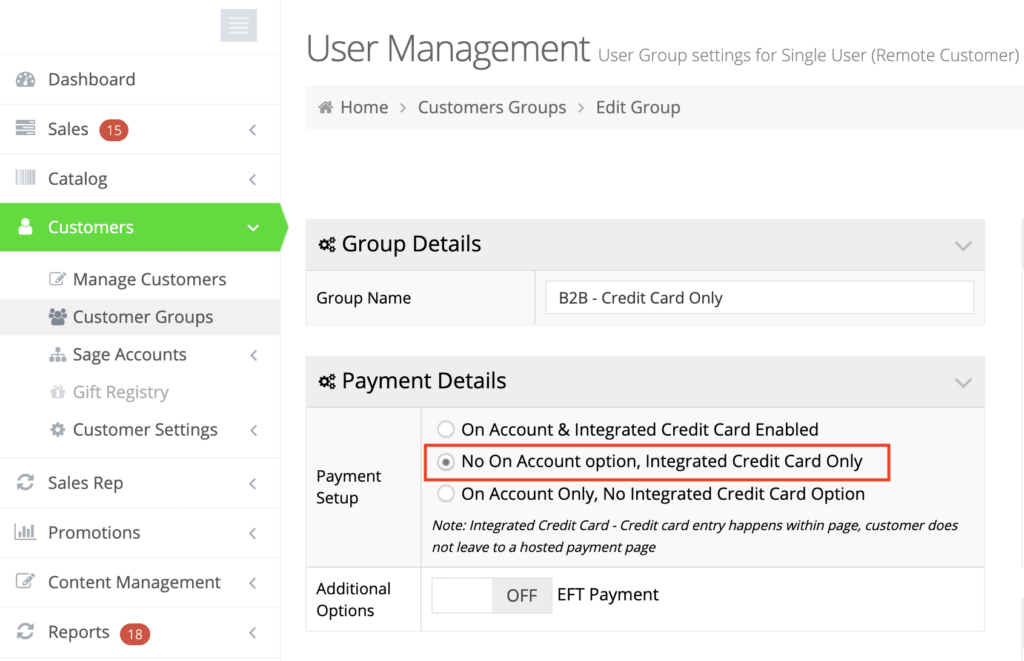 You have set up a customer group with the option “No On Account option, Integrated Credit Card Only” selected from Payment Setup. However, the “On Account” option still appears on the Payment Step in the Checkout process, as evidenced by the below screens.