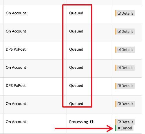 From time to time, an order may become stuck in the Queued processing status. This can occur for various reasons. The fastest way to remedy this issue is to Cancel the order that is stuck in the Processing processing status.