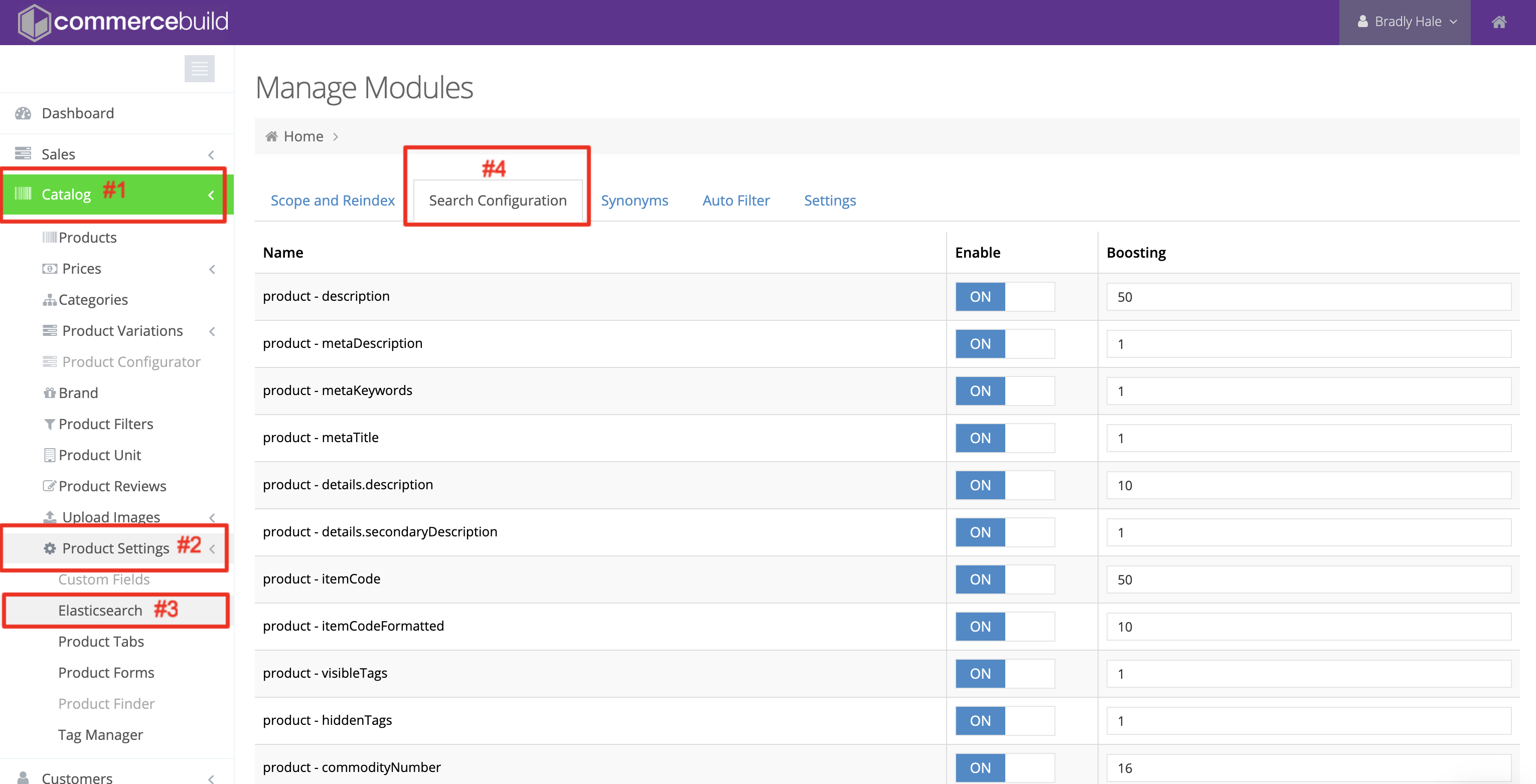 To set this up, go to Catalog > Product Settings > Elasticsearch > Search Configuration.