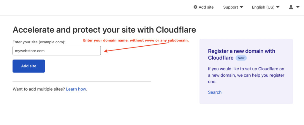 In this tutorial, we’ll help you sign up for Cloudflare and add your domain to their services. This process is slightly technical. If you’re not familiar with Domain Name Systems (DNS) and their various records, you might consider reaching out to a technical contact or commercebuild support for assistance.