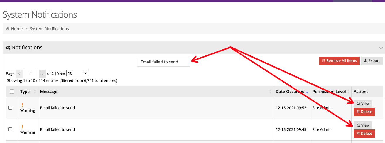 Under Reports > Notifications, web stores can see if they were affected by this issue by typing “Email failed to send“. This will return information about the email, such as the type of email as well as the recipient.